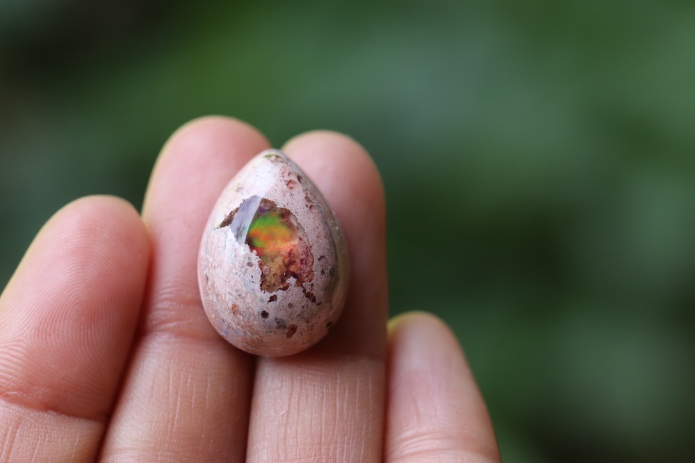 ルースにしようと思って選別した高品質な原石にMaktubにて穴あけ加工を施しております。